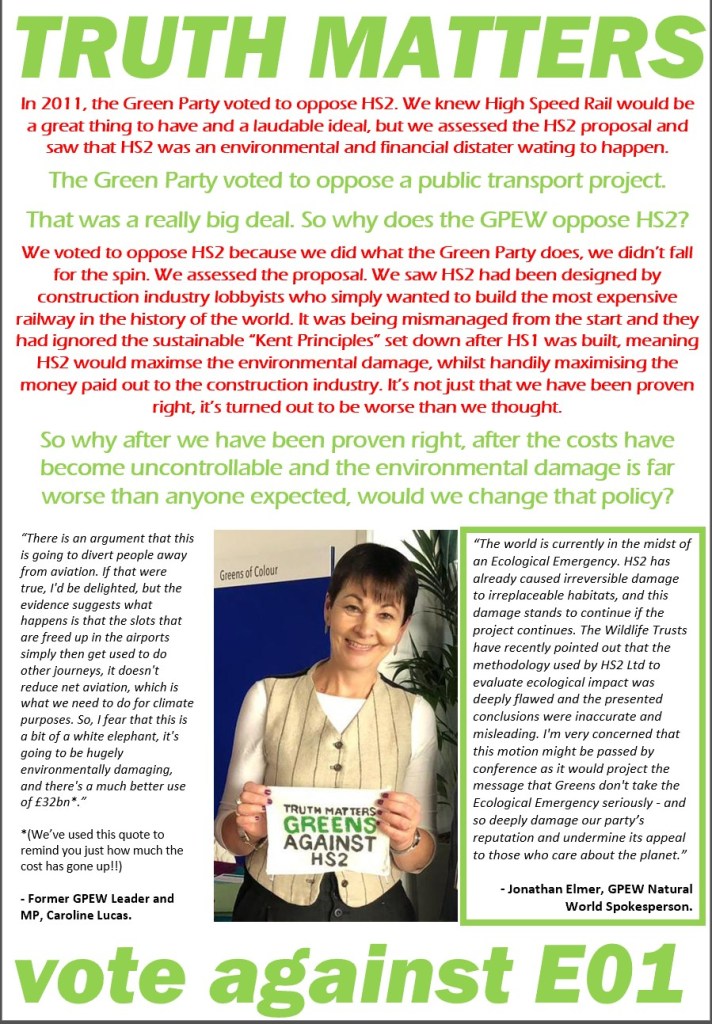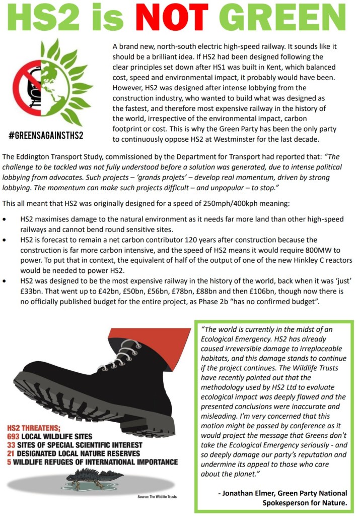 To be absolutely clear, as far as we can see, the policy which was passed means the Green Party hasn’t actually changed its stance on HS2 yet. To say that GPEW has is a selective and quite possibly illegal (we’ll get back to you on that one) reading of the policy.